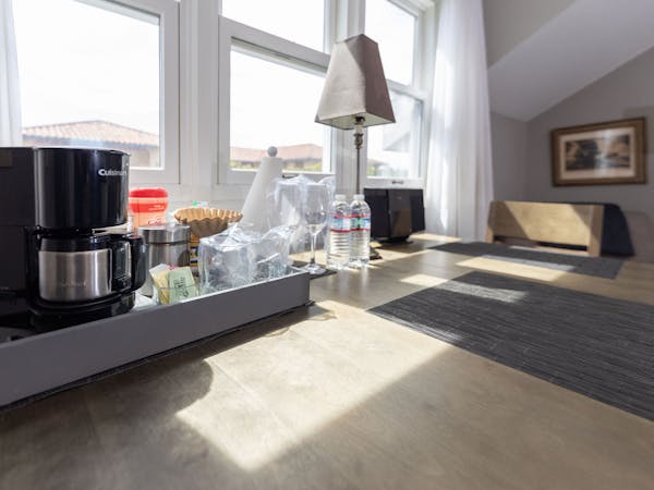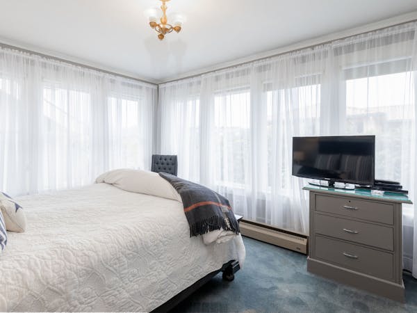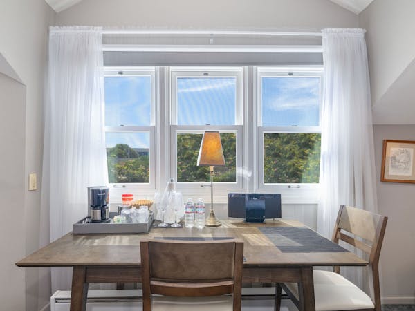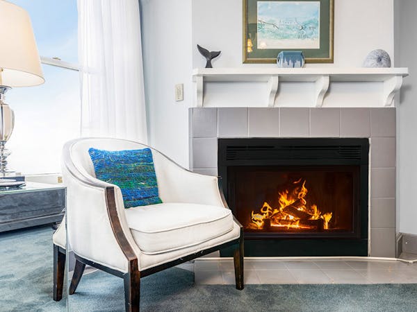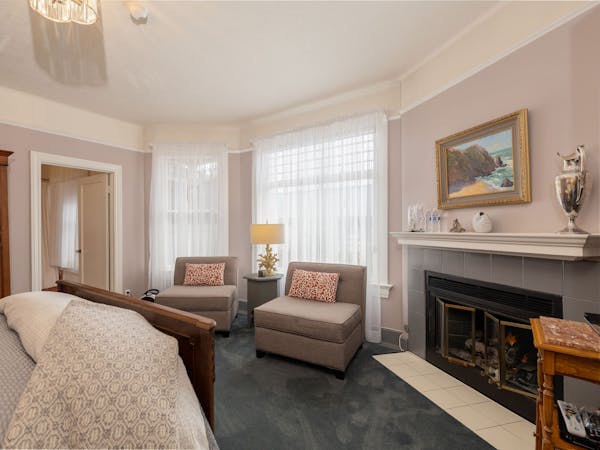 The Nantucket Suite includes a spacious living area filled with natural light from the numerous windows with a southern exposure. The gas fireplace provides warmth and romance.