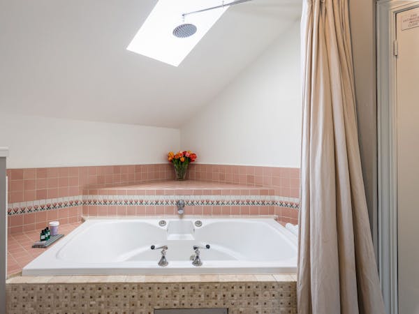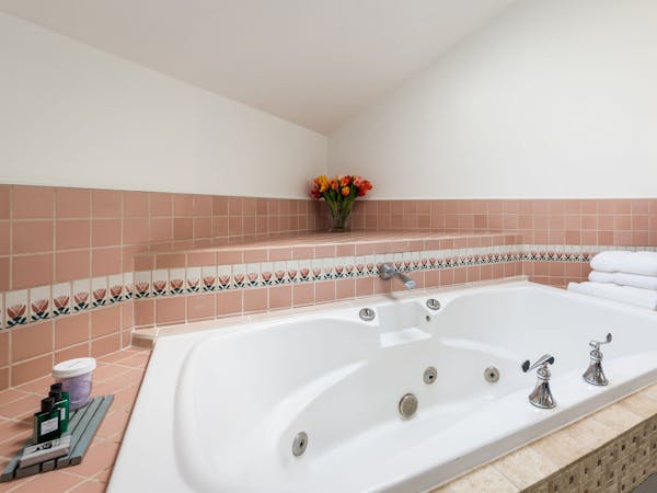 The room features a beautiful zinc metal King bed, a sitting area and a cathedral ceiling. There is a whirlpool tub with jets and rain shower beneath a skylight. You’ll have your own refrigerator and coffee maker with a selection of teas and our Nantucket Blend organic coffee. Additional amenities include Air Conditioner, HD DirecTV, music player, luxurious spa bathrobes, shampoo, conditioner and body lotion. . Rate includes breakfast and complimentary wine bar in the evening. Plus breakfast is served in your room upon request …truly extravagant!