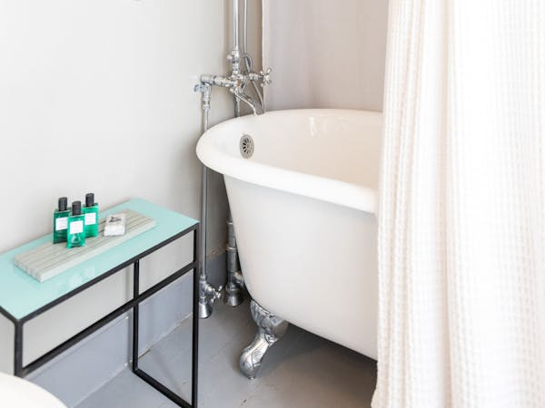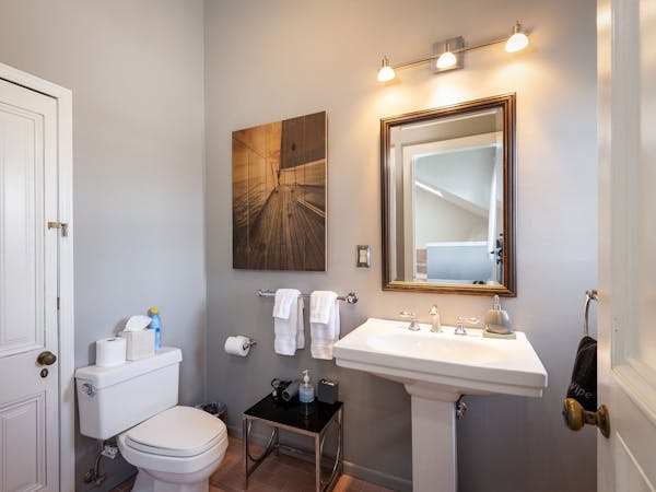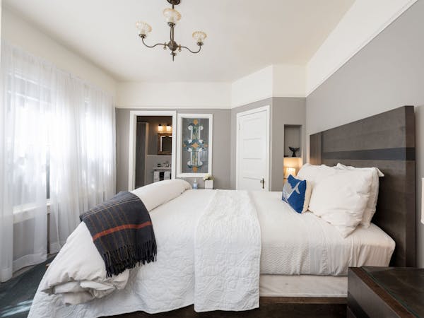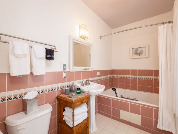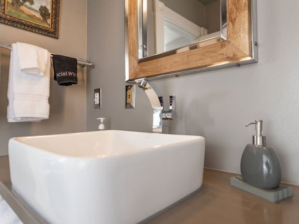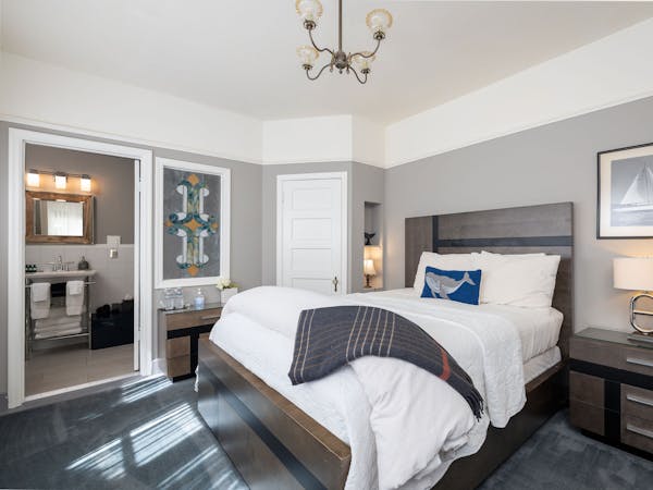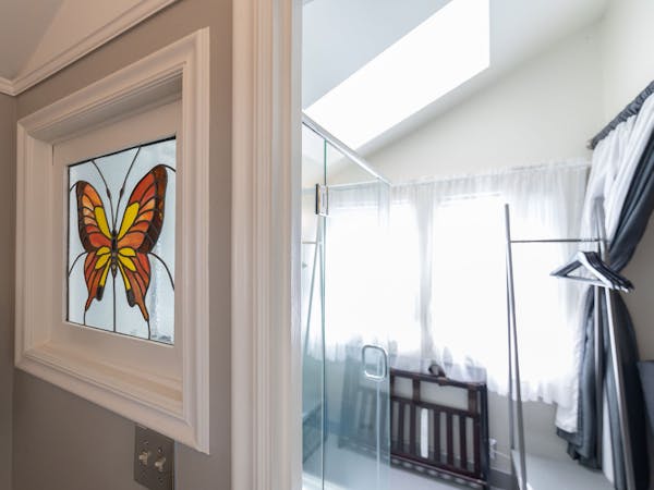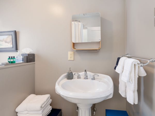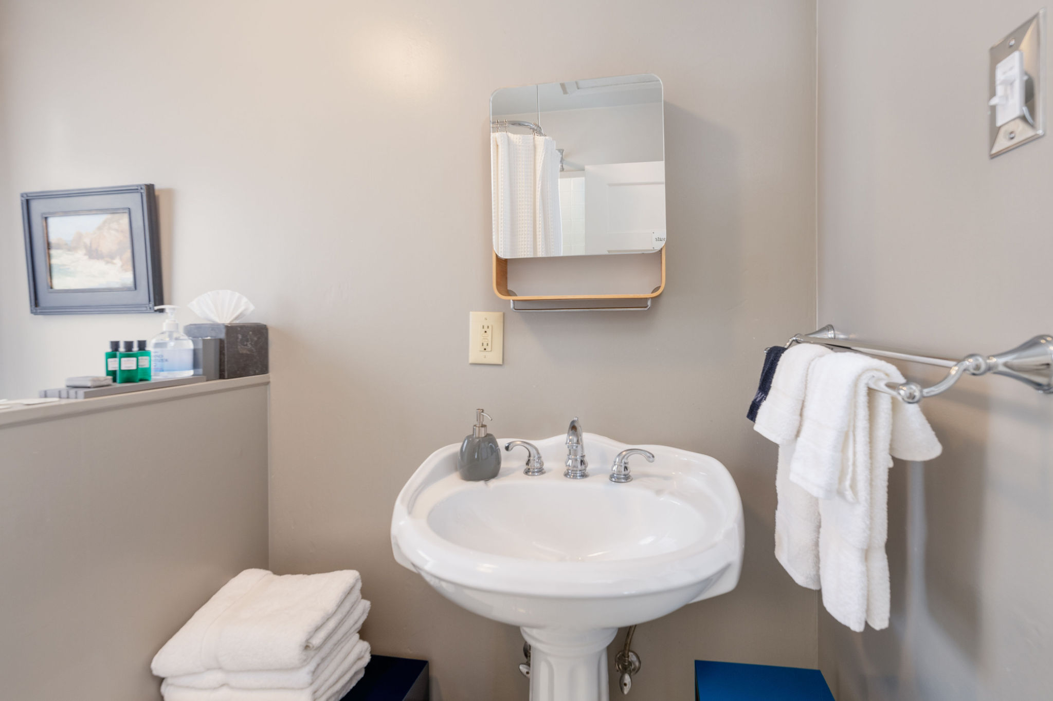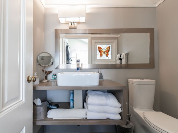 Bright and Breezy – The Light Ship Room, located on the second floor, has two walls of windows overlooking the courtyard and garden, making this the brightest room in the house. The room features a beautiful zinc metal Queen bed, walk-in glass rain shower and modern vanity. Additional amenities include HD DirecTV, music player, luxurious spa bathrobes, shampoo, conditioner and body lotion. Rate includes breakfast in the Dining Room and complimentary wine bar in the evening.