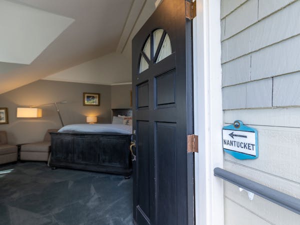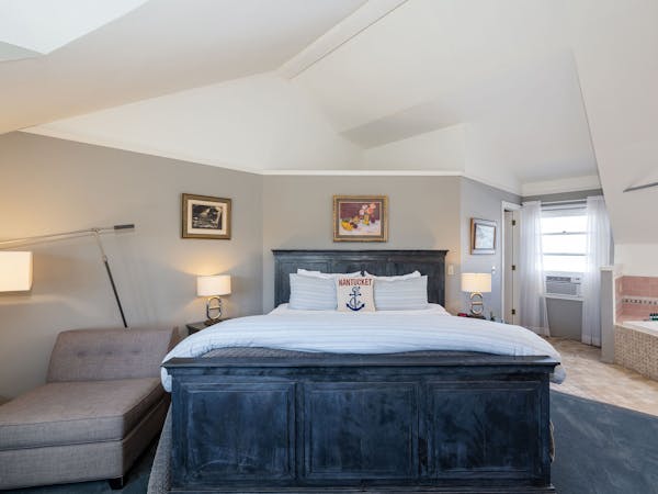 Spacious and Serene - The large Sankaty Head Room features a King bed, an intimate sitting area and gas fireplace. This room is one of only two rooms on the first floor. Facing the beautiful front garden and a private bath with a whirlpool tub and hand shower. Additional amenities include HD DirecTV, music player, luxurious spa bathrobes, shampoo, conditioner and body lotion. Beautiful artwork and artifacts complete the rich decor of this room. Rate includes breakfast in the Dining Room and complimentary wine bar in the evening.