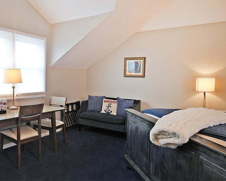 Stay in style with spacious suites at Nantucket Whale Inn, located in the heart of Nantucket. Enjoy premium furnishings, private sitting areas, and convenient access to local beaches, shops, and dining for an unforgettable island experience.