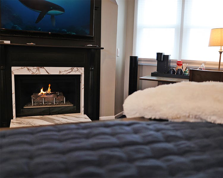 The Nantucket Suite includes a spacious living area filled with natural light from the numerous windows with a southern exposure. The gas fireplace provides warmth and romance.